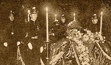 Una vez trasladados los restos al Salón de Honor de la Compañía, se levantó una severa capilla ardiente, en cuyo alrededor formaron voluntarios de las diversas compañías del Cuerpo, rindiendo un sentido homenaje al caído. Innumerables fueron las visitas que desfilaron por el cuartel. Desde el curioso hasta el más emocionado ciudadano. El salón de la Compañía daba un aspecto imponente y de rigurosa pompa. Las flores regadas con las lágrimas de los deudos y amigos, transformaban la capilla en un hermoso jardín celestial.